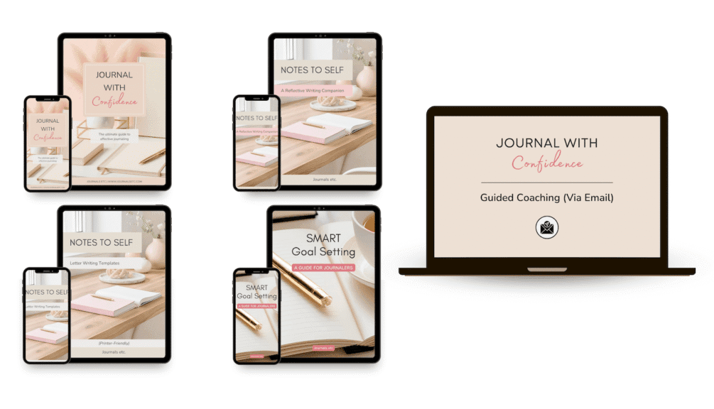 Start with our comprehensive journaling guide, which includes a 30-day journal and a 30-day journaling challenge to help build your confidence. Our reflective writing companion (together with a printer-friendly version) is also included to complement the main guide.